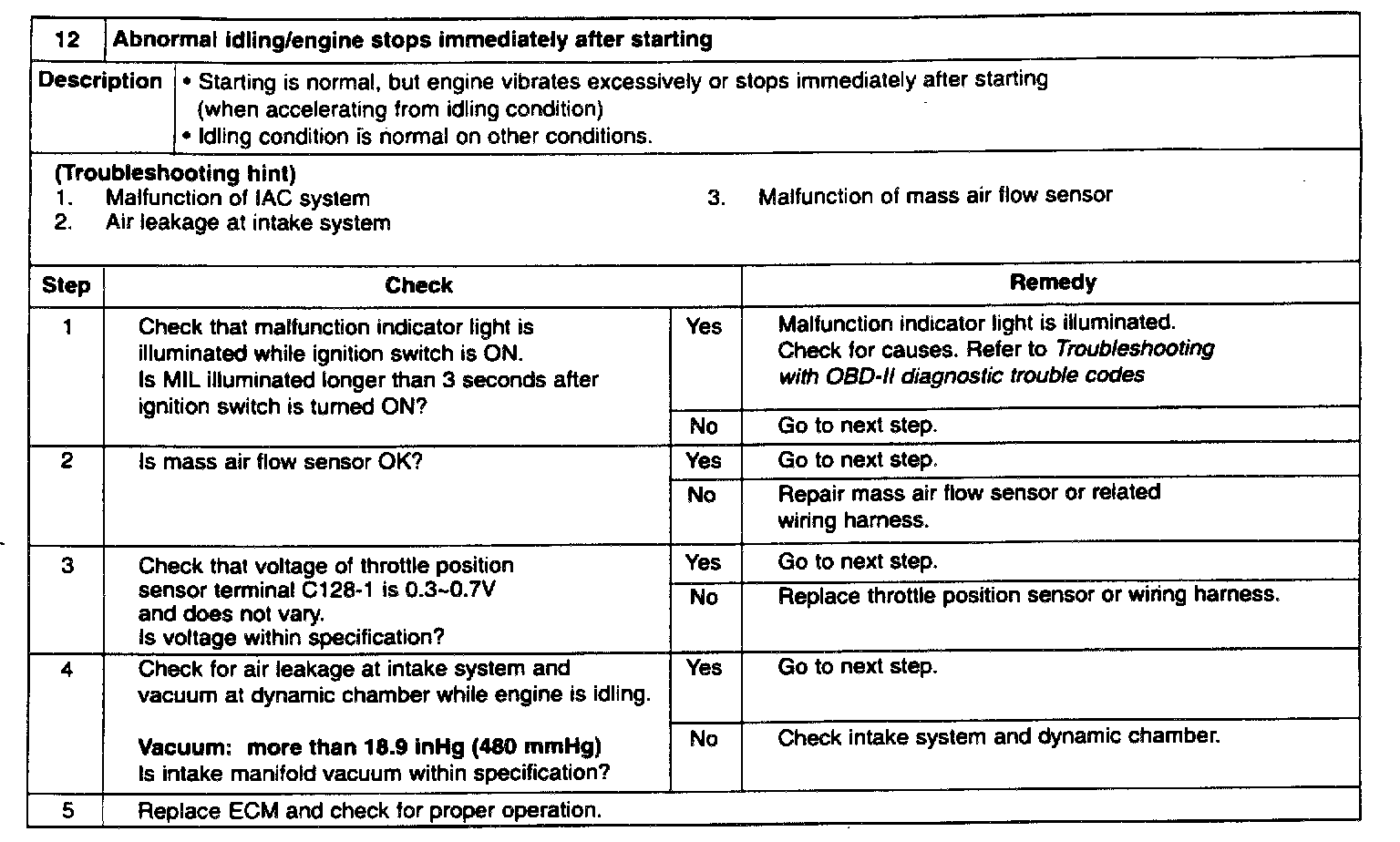 12 - Abnormal Idling/Engine Stops Immediately After Starting