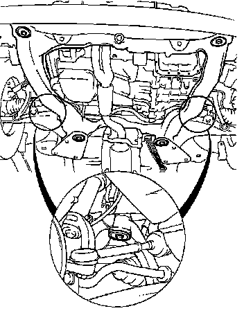 27. Remove the driver shaft and hang the engine and transaxle at the hoist, then separate engine and transaxle from the subframe.