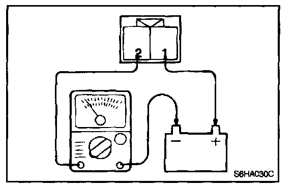2. In dark place, measure ampere between pin 2 and battery (-) terminal.