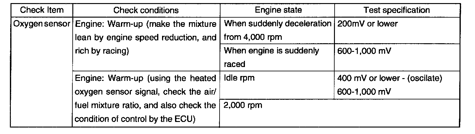 2. If the HO2S check results were normal, but the sensor output voltage is out of specification, check for the following items (related to air fuel ratio control system):