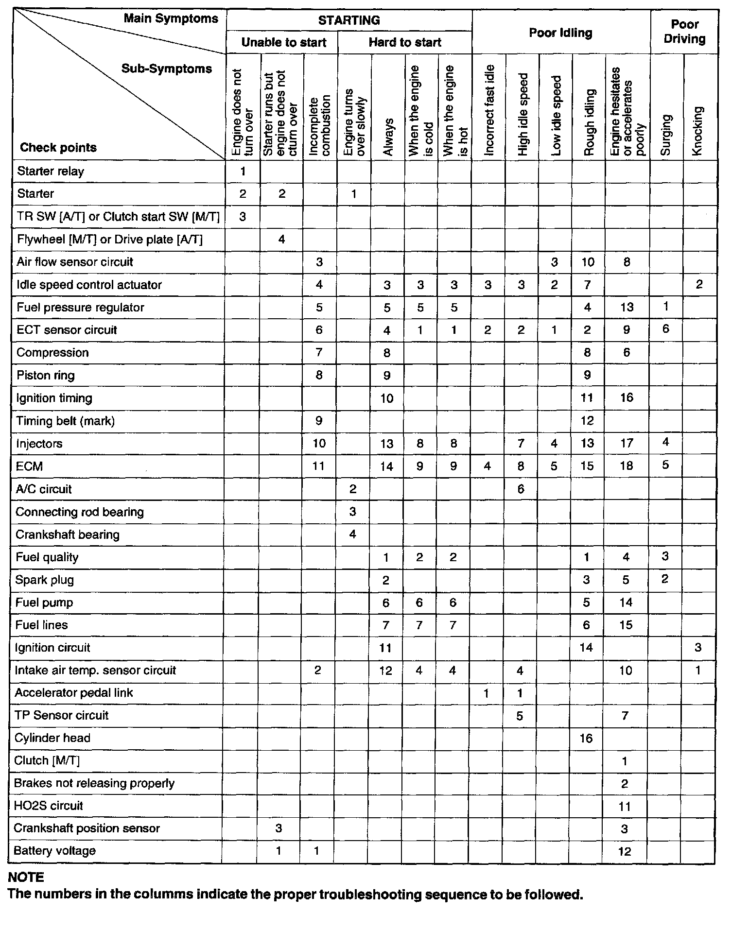 Troubleshooting Guide Chart, Part 1:
