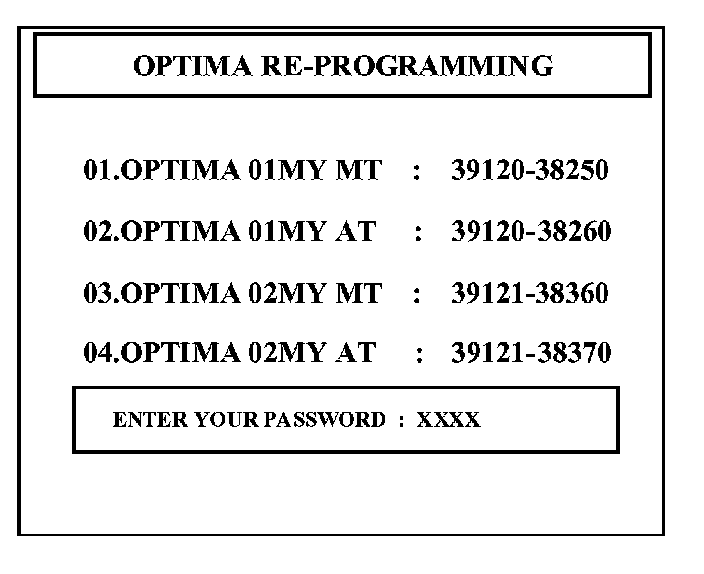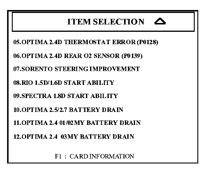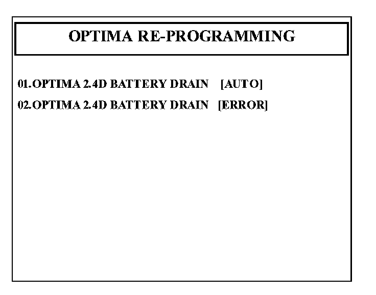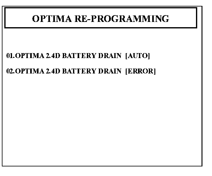 16. Select "02. OPTIMA 2.4D BATTERY DRAIN [ERROR]" and press the "ENTER" key.