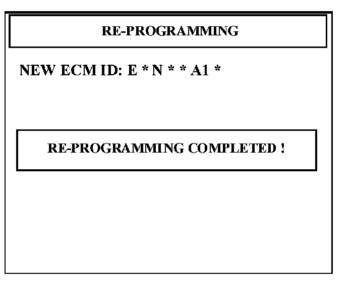 20. When "REPROGRAMMING COMPLETED" message is displayed, turn ignition key to the "OFF" position and disconnect Hi-Scan Pro from the vehicle. Wait at least 20 seconds, start engine and verify normal operation.