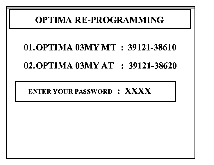 18. At the prompt, enter your password from the password table according to vehicle model year and transaxle type and press the "ENTER" key.