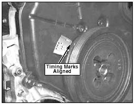 3. Rotate engine to # 1 TDC mark on crankshaft pulley.