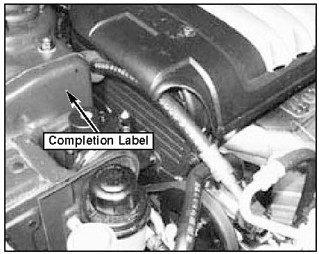 5. A. If cam timing is correct, install new upper timing belt cover. NO FURTHER ACTION IS REQUIRED. Apply campaign completion label in location shown.
