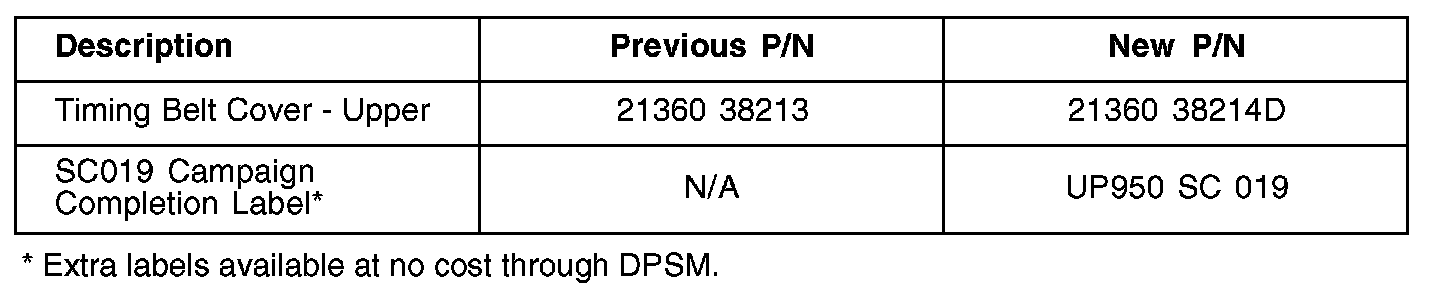Vehicles produced after 1/30/01 incorporate a revised upper timing belt cover to prevent this condition.