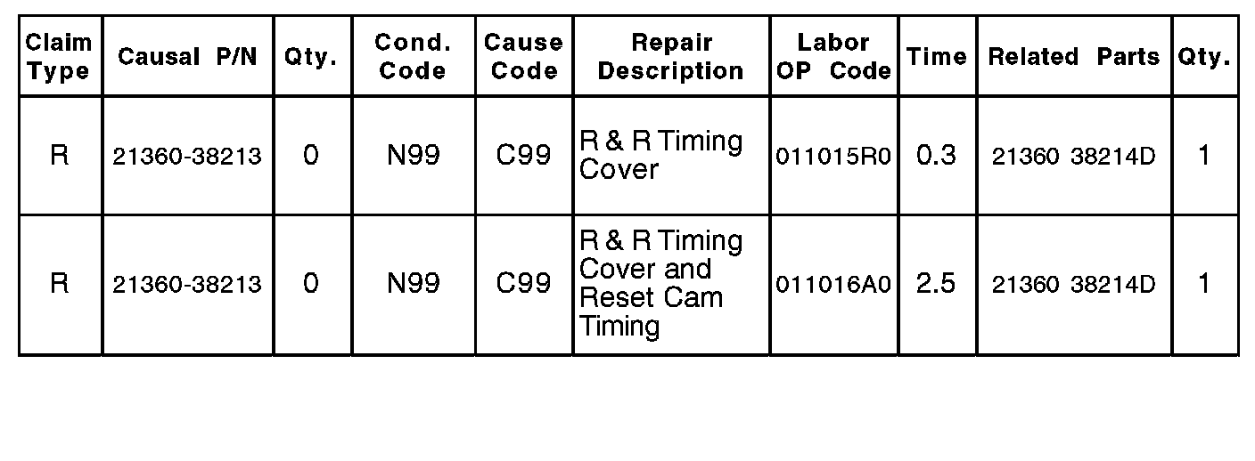 There is no charge to the customer for this repair. Use the procedures provided in this bulletin to install the revised timing cover.