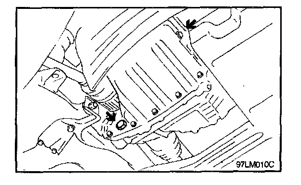 1. With the vehicle parked at a level place, remove the magnet plug to drain transaxle oil.