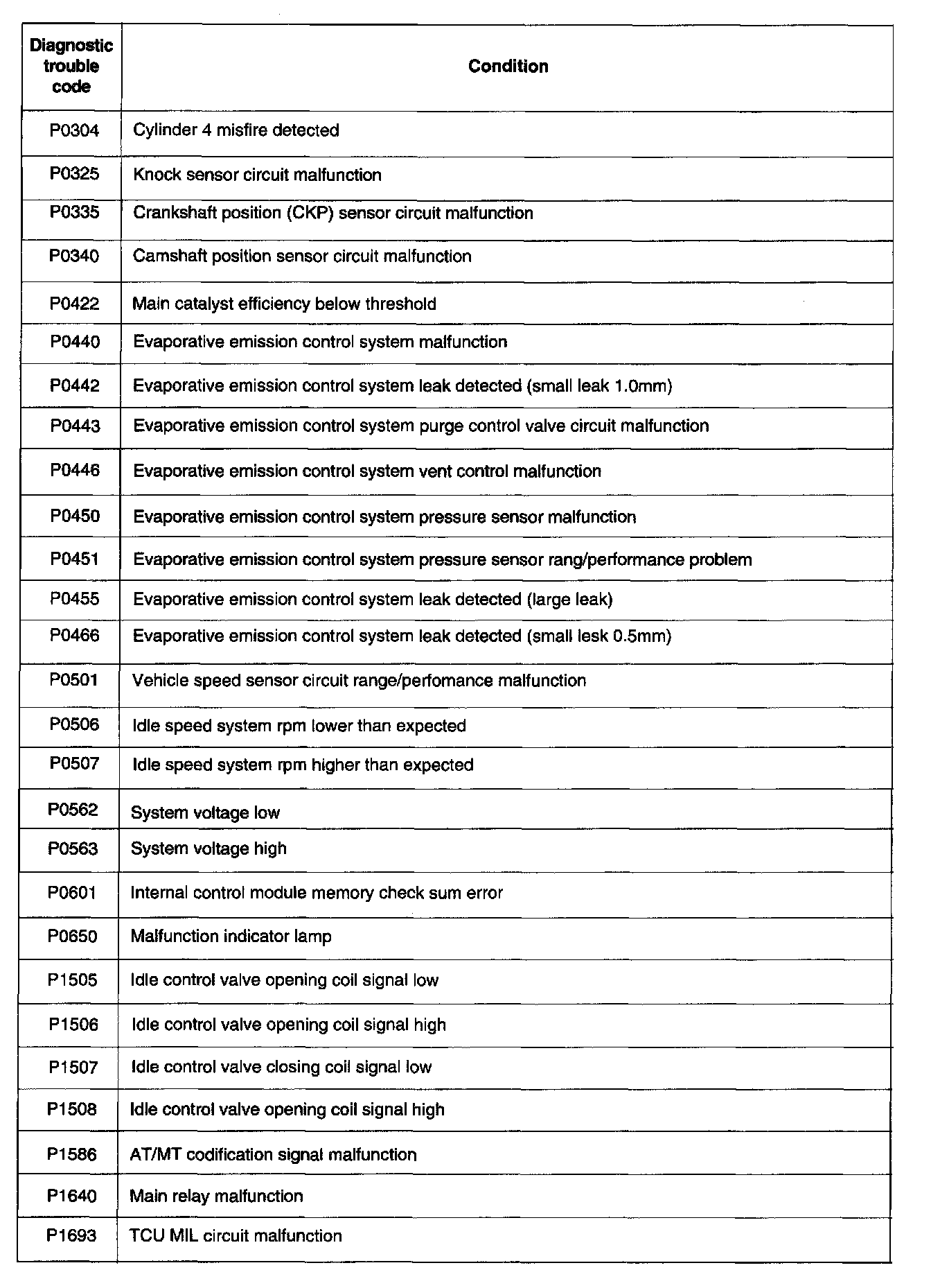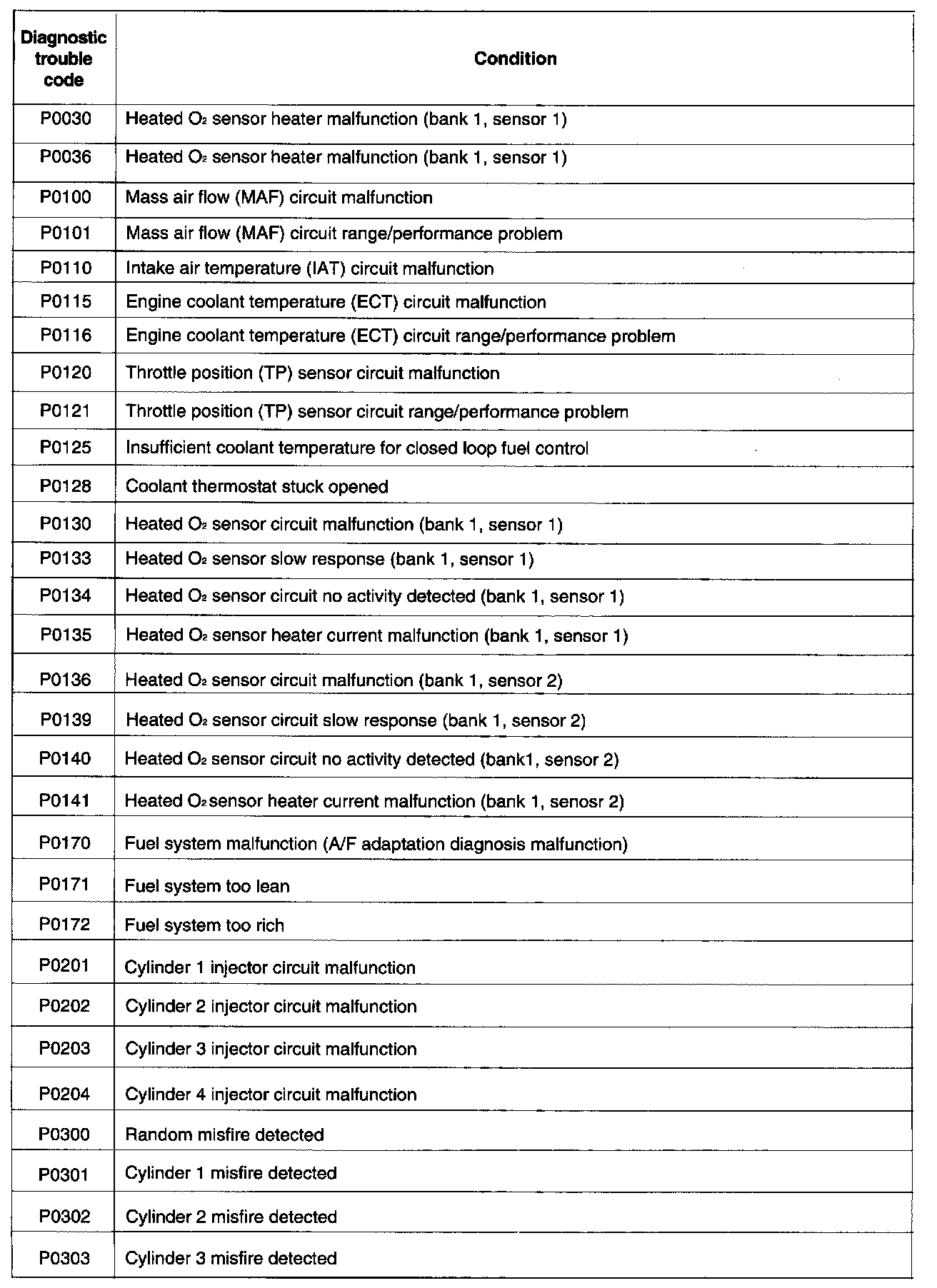 P0030 - P0303: