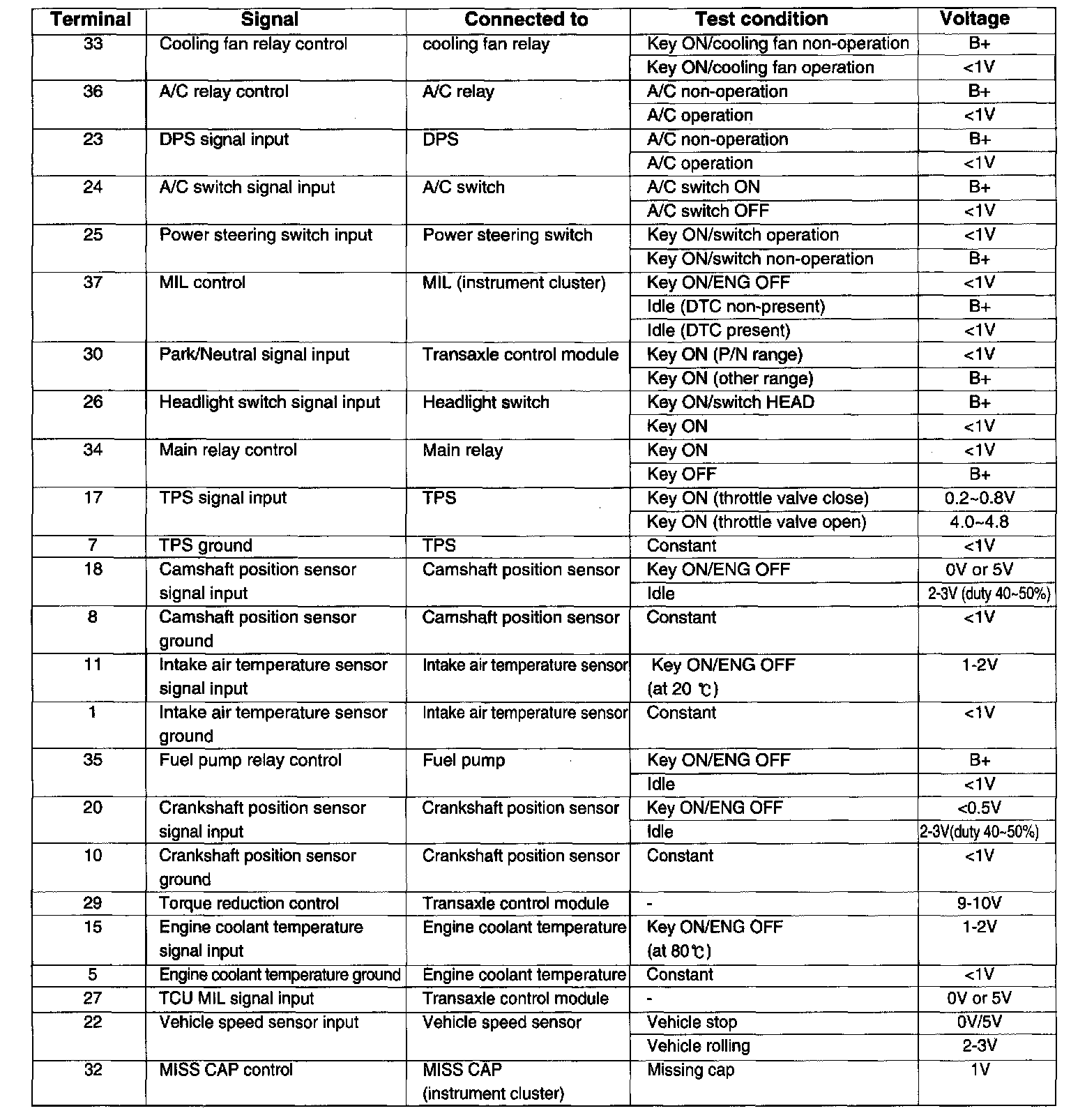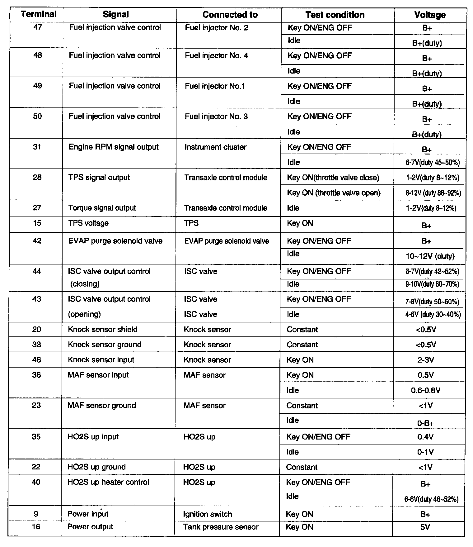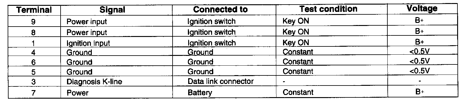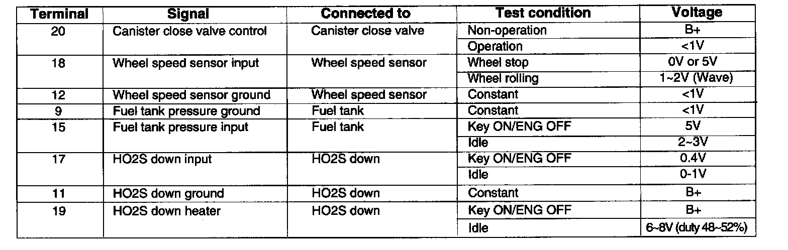 ECM Pinout Values