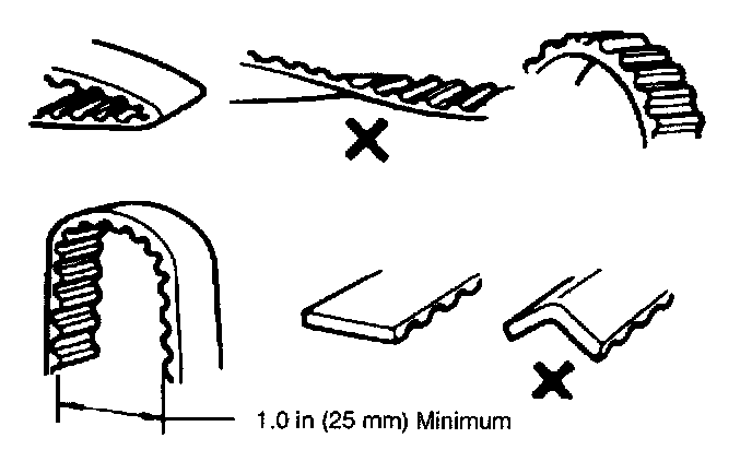 3. Bend timing belt into a "U" shape as shown in figure. Distance "A" must be at least 1.0 in (25 mm).