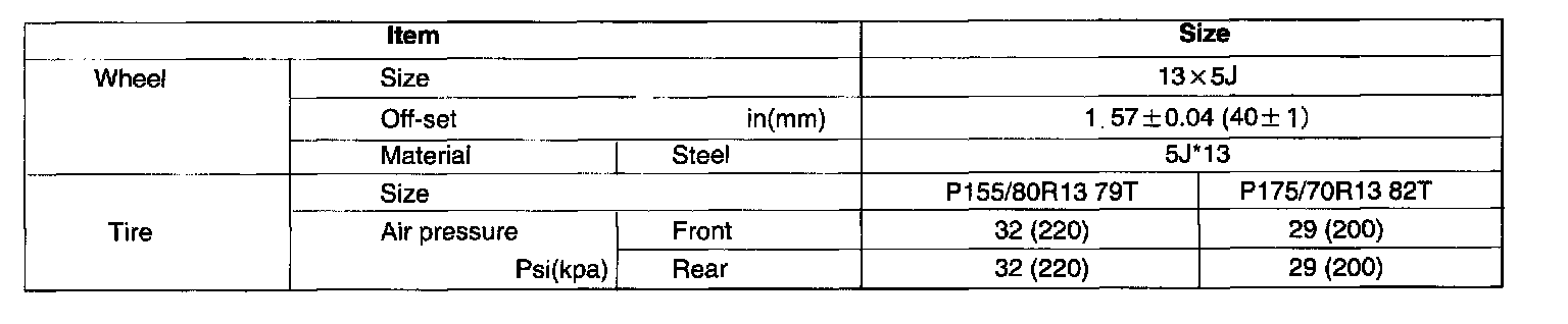 Wheels and Tires: Specifications