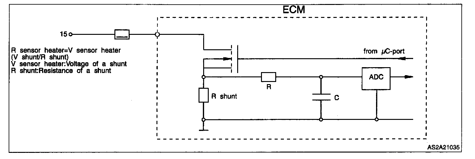The ECM is supplied with information regarding the oxygen content of the exhaust gases by the front HO2S. The signal is used to compute the injection period. The front HO2S monitors the contaminated exhaust gases. This, in time, causes aging of the device and a change in the signal.