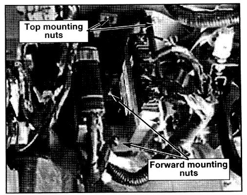 4. Loosen top mounting nuts (2) that secure ECM and TCM mounting brackets to tire wall. Top mounting nuts require loosening only, do not remove.