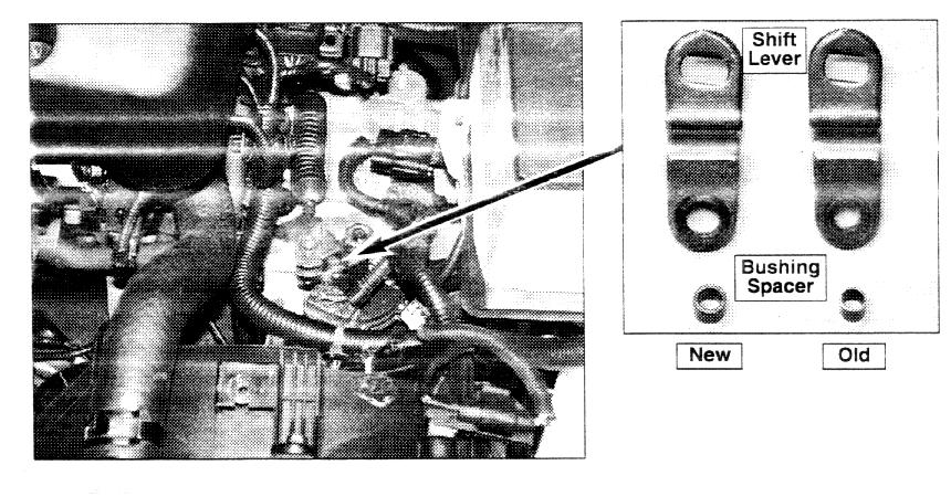 Vehicles produced after 7/26/00 incorporate a revised transmission shift lever with a larger bushing spacer to eliminate damage during shift cable assembly.