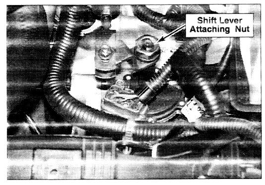 5. Loosen nut that attaches manual shift lever to manual shaft.