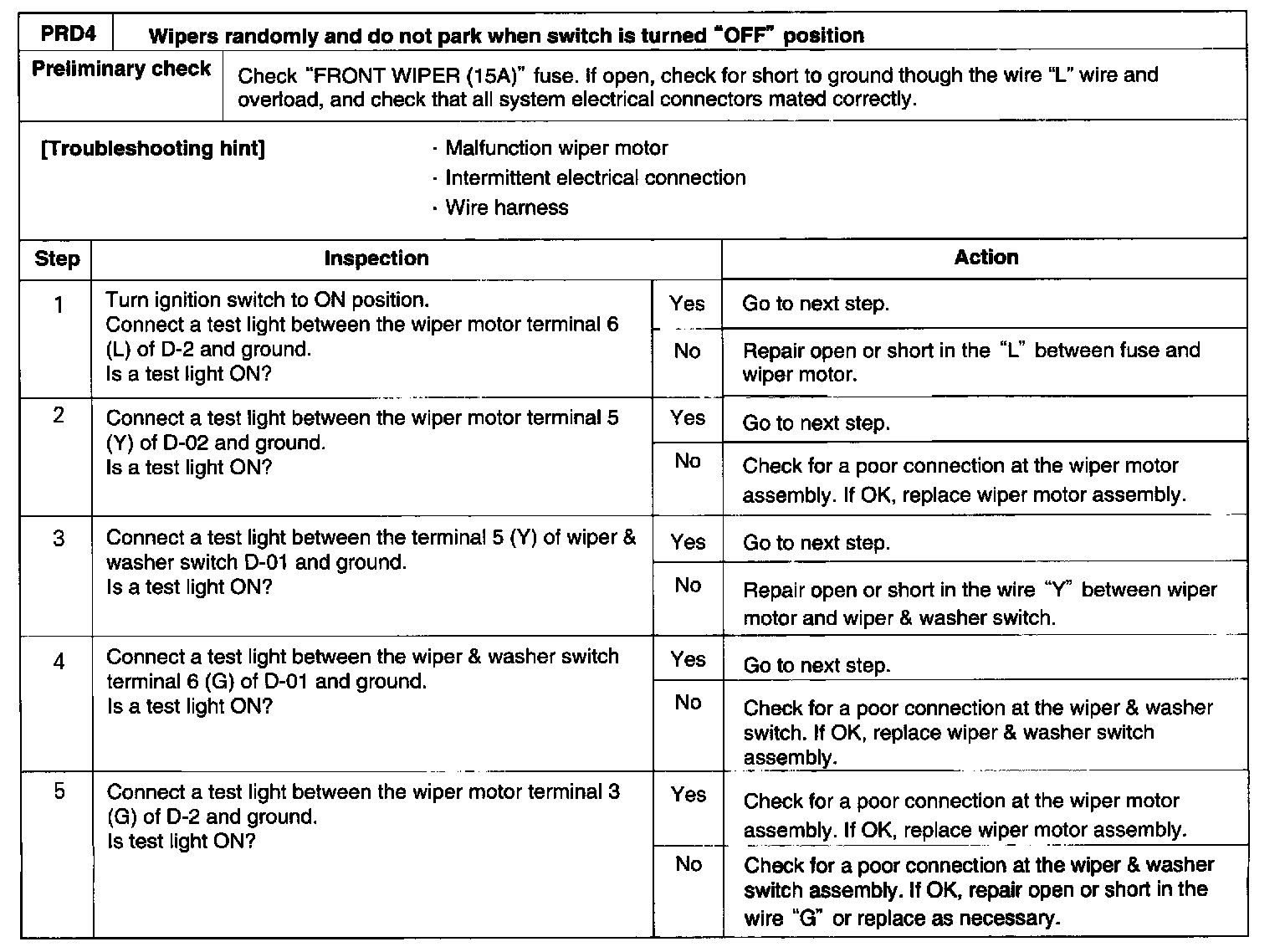 PRD4 - Wipers Random and Do Not Park When Switch Is Turned Off