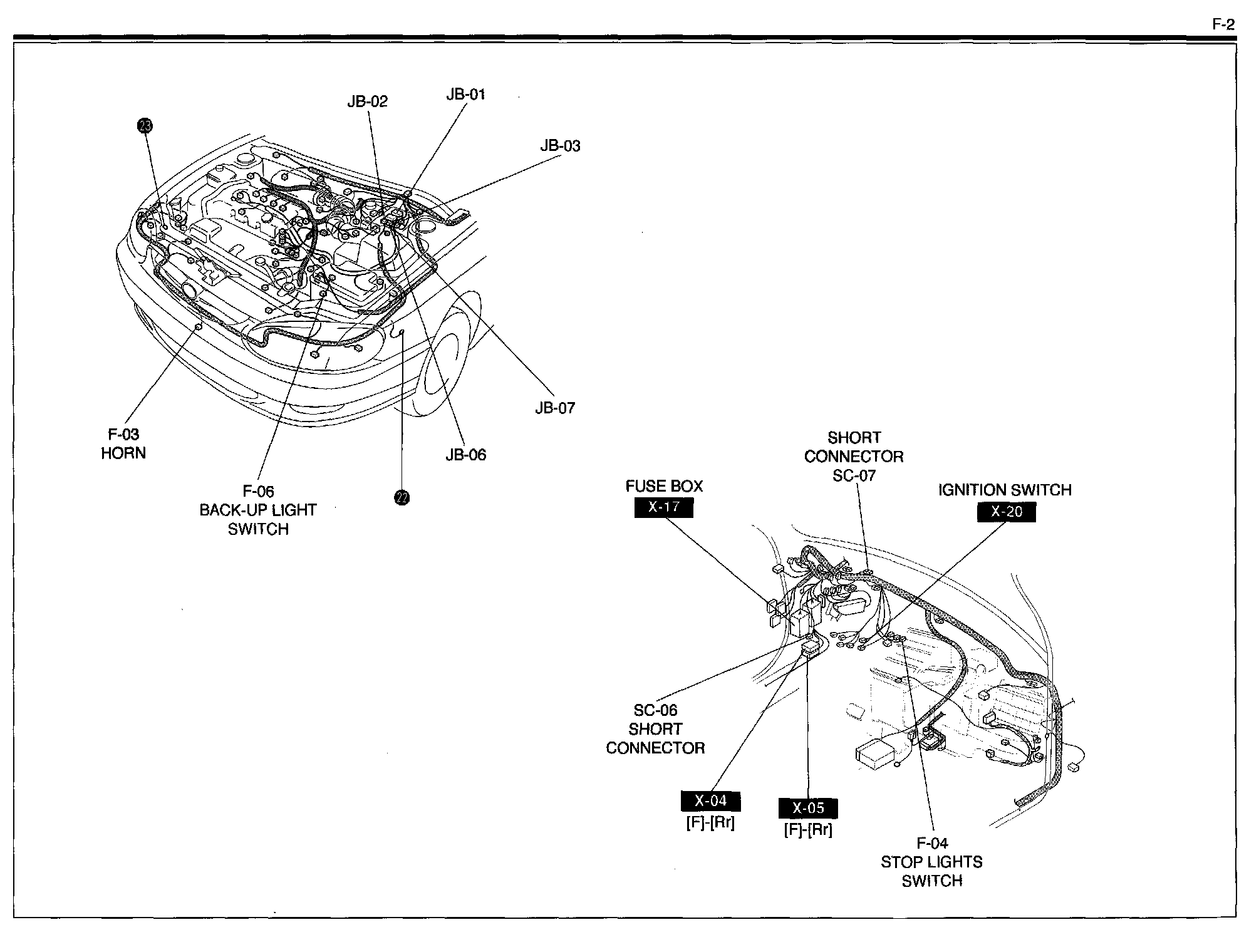 F-2 - Horn, Stop Lights Switch, Back-up Lights Switch Harness/Connector Symbols:
