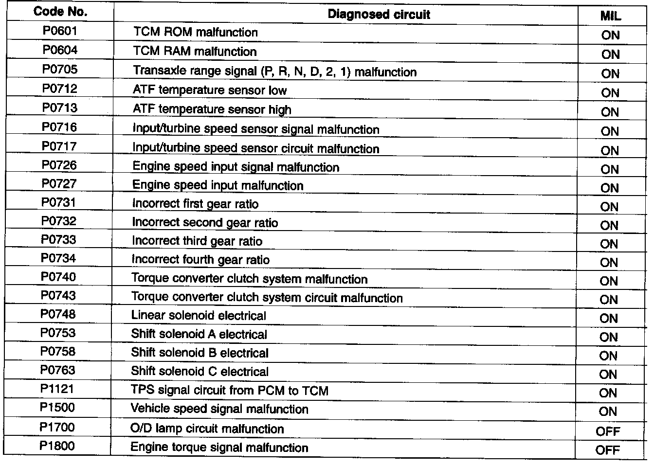 According to TCM logic, transaxle range (P0705) trouble code accompanies vehicle speed sensor (P1500) trouble code.
