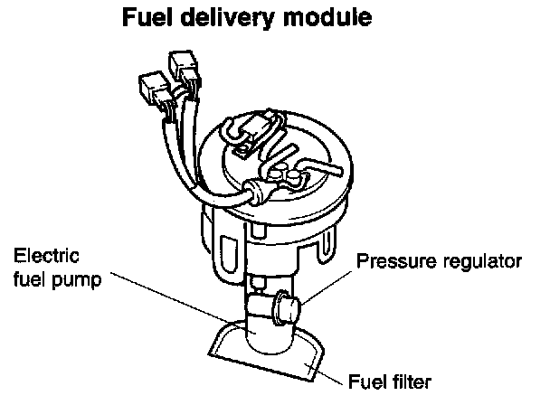 The electric fuel pump is located in the fuel delivery module. It is mounted with and connected to the fuel sender unit.