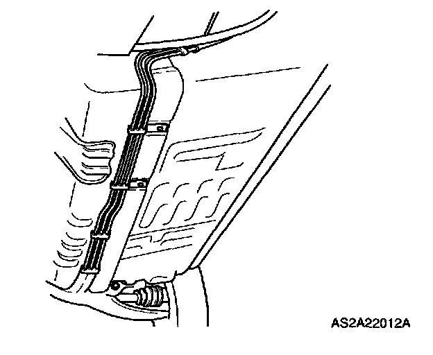 1. Reinsert fuel lines carefully into each of six retaining brackets along undercarriage of vehicle chassis until all fuel lines have been properly positioned into place.