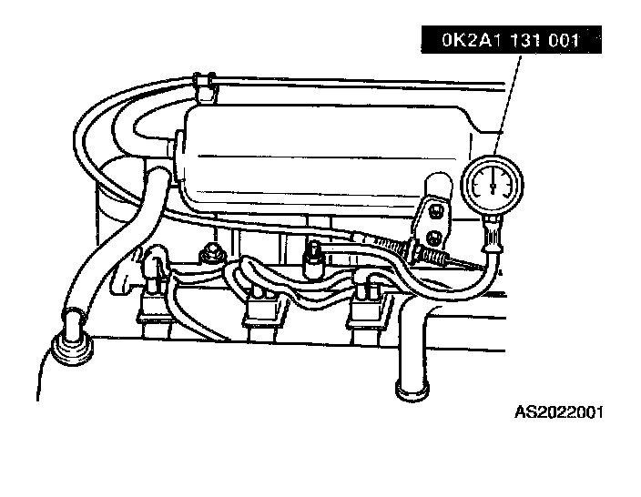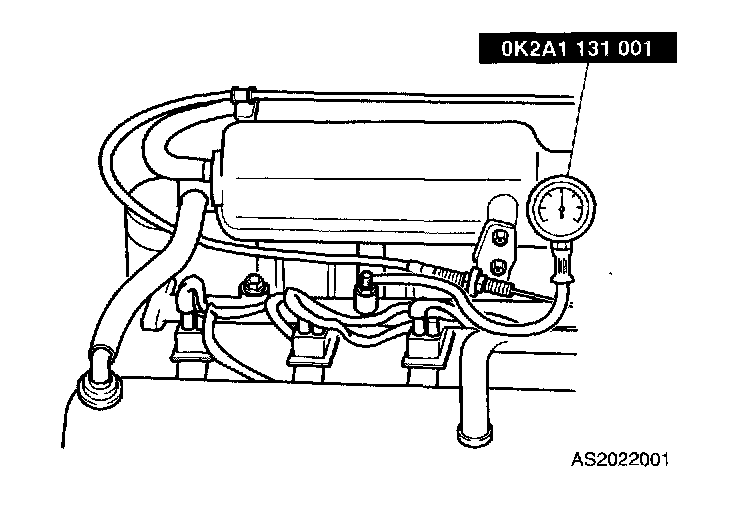 3. Install SST(0K2A1 131 001) to service port located on center of fuel rail.
