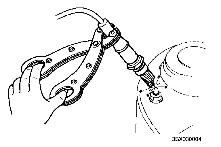 3. Hold spark plug with insulated pliers 0.2 to 0.39 inch (5 - 10 mm) from a ground.