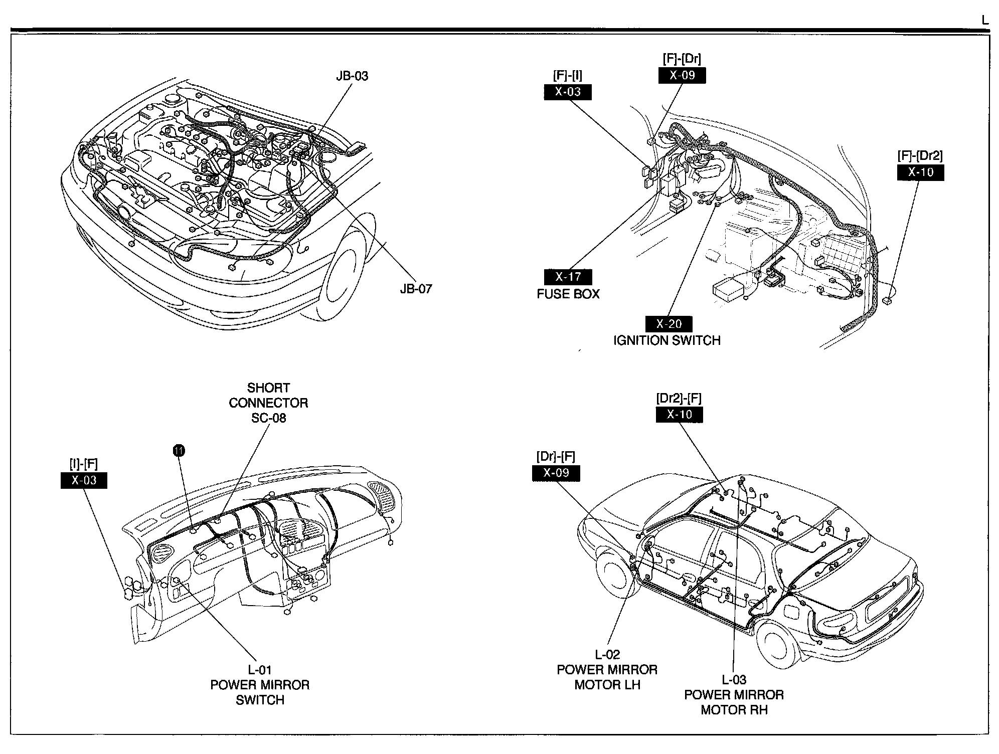 L - Power Mirror System Harness/Connector Symbols: