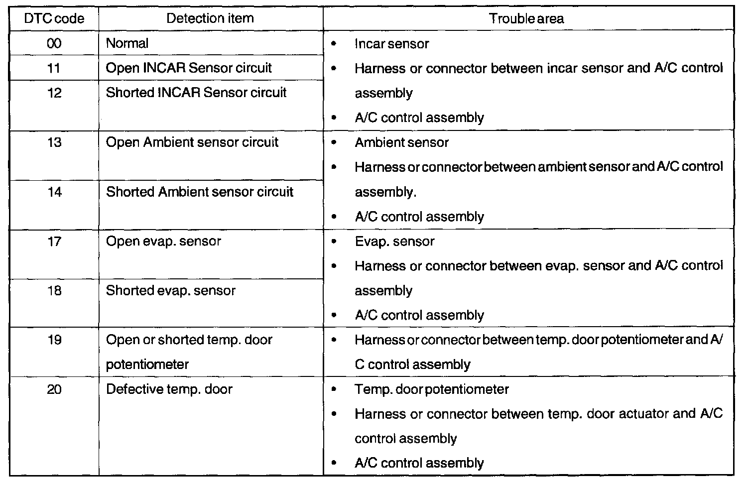 If a malfunction code is displayed during the DTC check, check the circuit listed for that code in the table.
