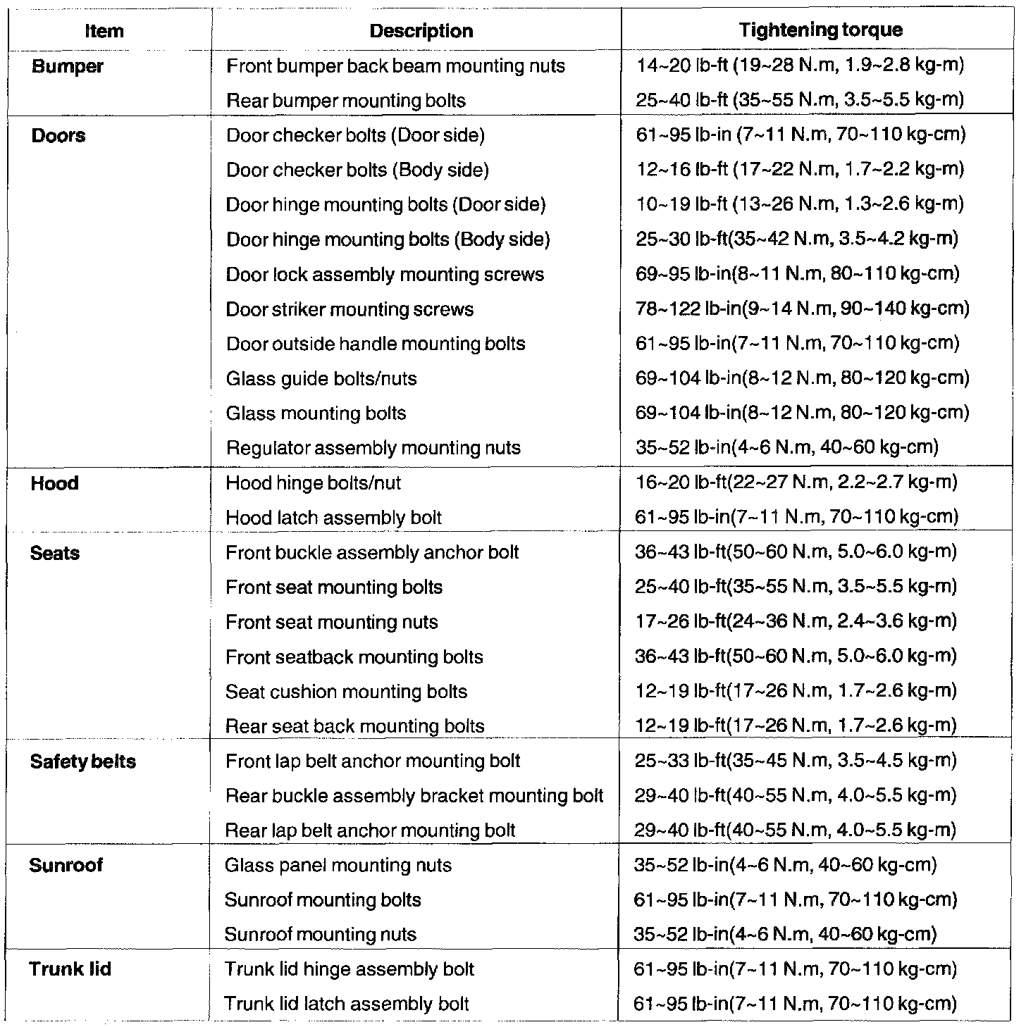 Tightening Specification: