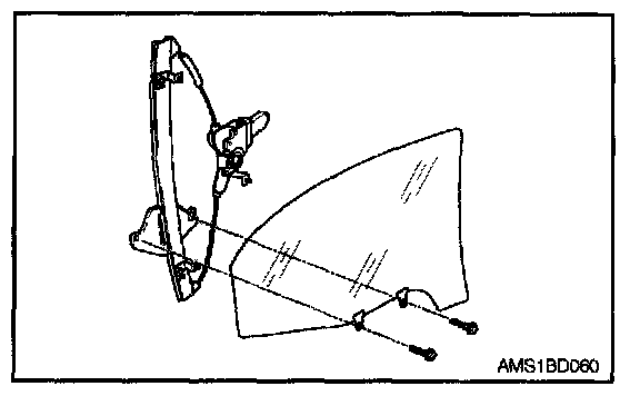2. Loosely install two glass mounting bolts on window regulator assembly.