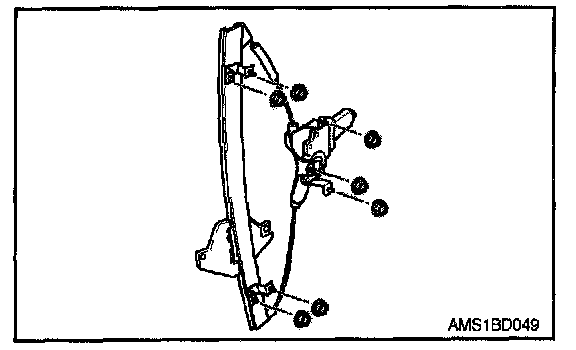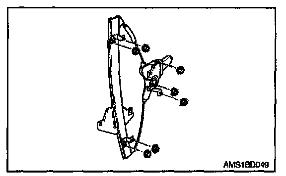 6. Remove two glass mounting bolts from window regulator assembly.