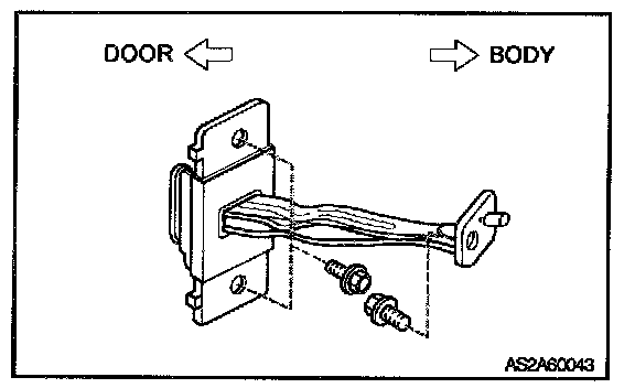 Tighten door hinge bolts to 10 - 19 lb-ft (13 - 26 N.m, 1.3 - 2.6 kg-m)
