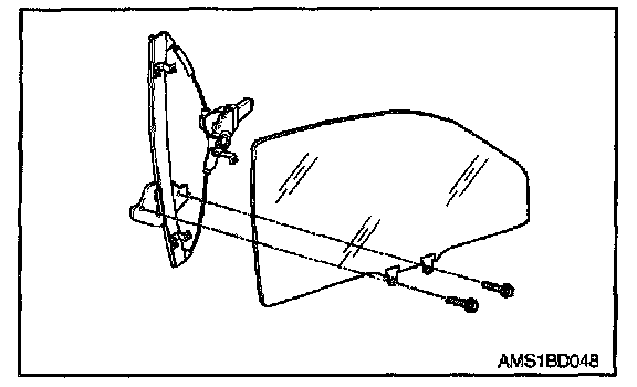 10. Tighten two glass mounting bolts on power window regulator assembly.