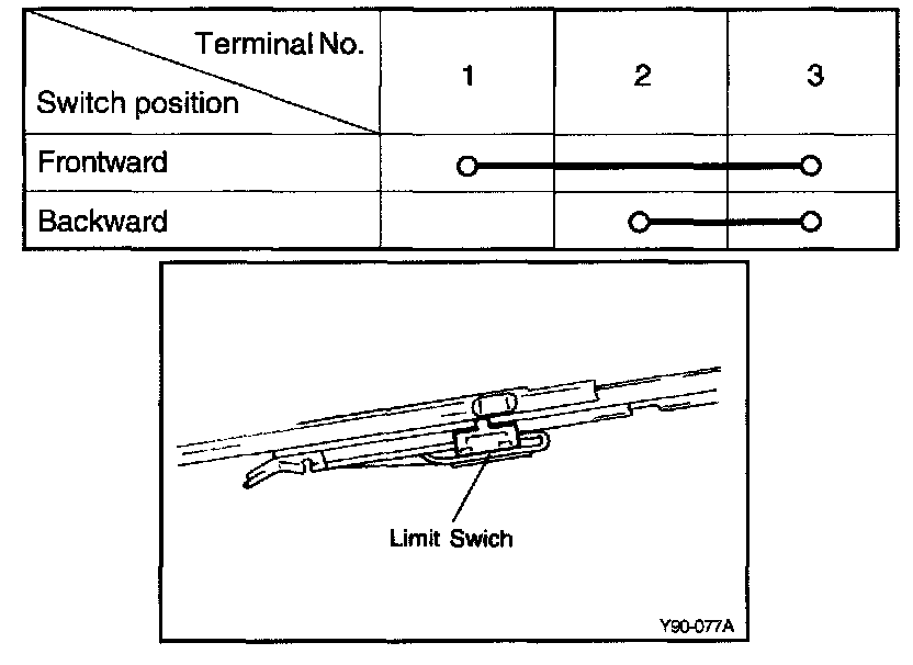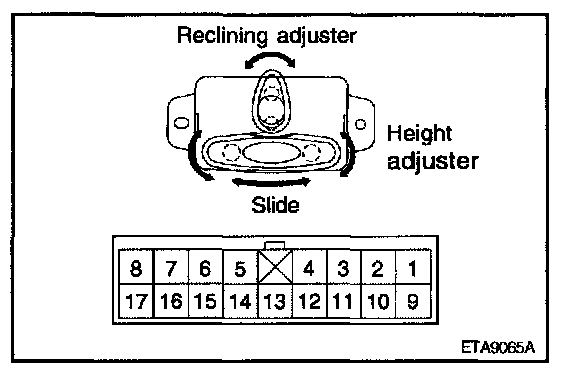 INSPECTION OF POWER SEAT SWITCHOperate the power seat switch and check for continuity between terminals. If continuity is not as specified, replace the switch.