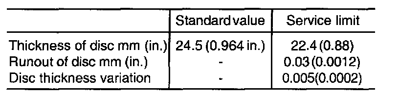 1. Using a micrometer, measure disc thickness at eight positions, approximately 45° apart and 10 mm (0.39 inch) in from the outer edge of the disc.