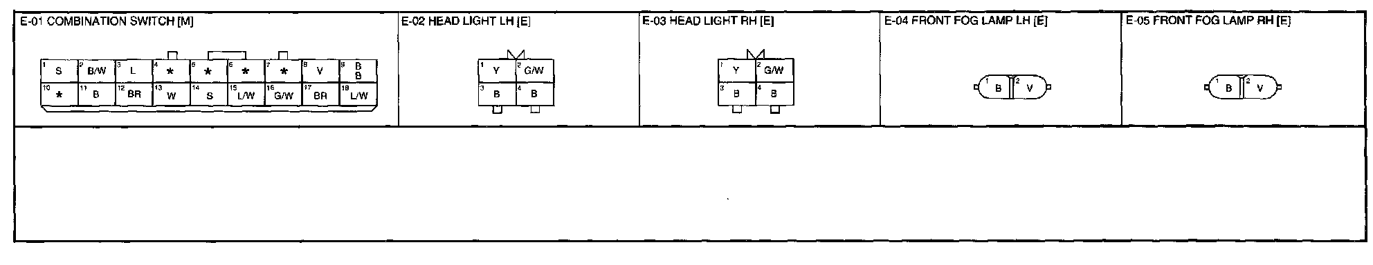 E-1 - Head Light, Fog Lamp Connectors: