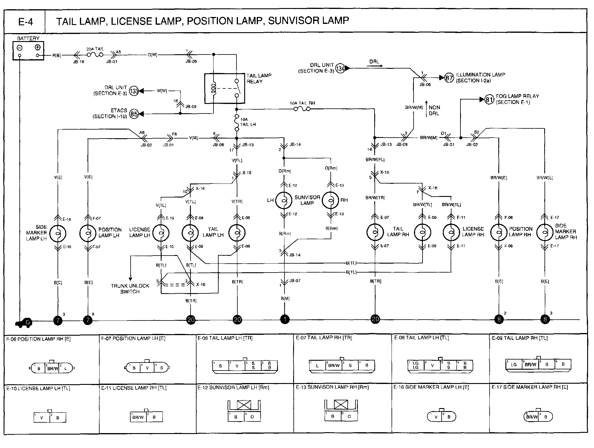 E-4 - Tail Lamp, License Lamp, Position Lamp, Sunvisor Lamp Circuit: