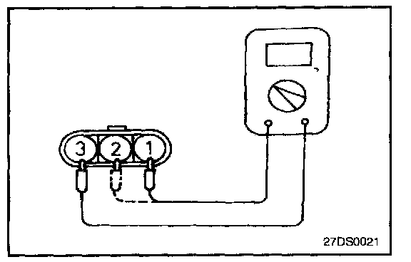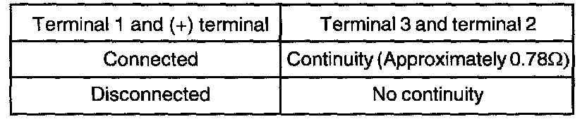 Connect the negative (-) terminal of a 3 V power supply to terminal 2 of the power transistor; then check whether there is continuity between terminal 3 and terminal 2 when terminal 1 and the positive (+) terminal are connected and disconnected. replace the power transistor if there is a malfunction.