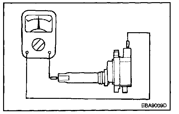 Measure the resistance between the high-voltage terminals of the ignition coil.