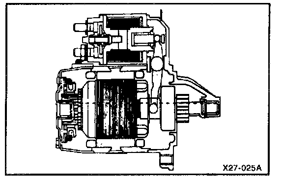 In order to prevent damage caused by excessive rotation of the starter armature when the engine starts, the clutch pinion gear overruns.