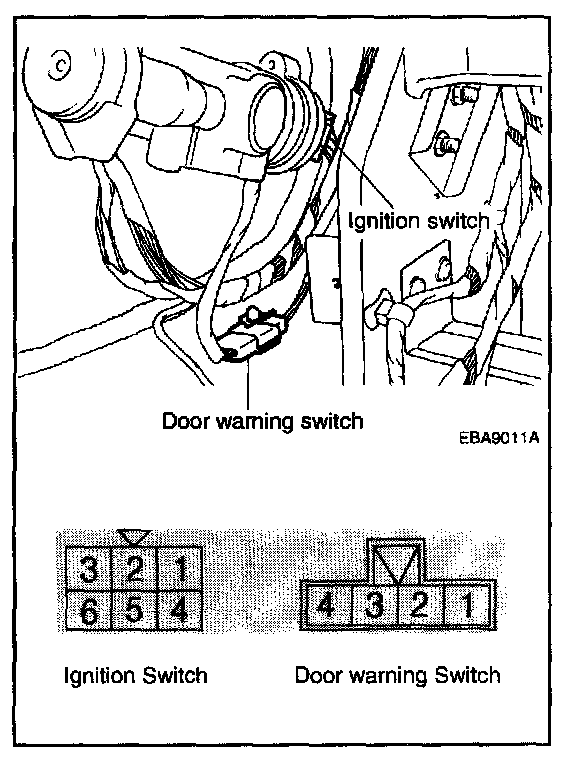 1. Because of the location of the connector, there is no way to check the continuity between the connector terminals with the ignition switch installed. The ignition switch must be removed.