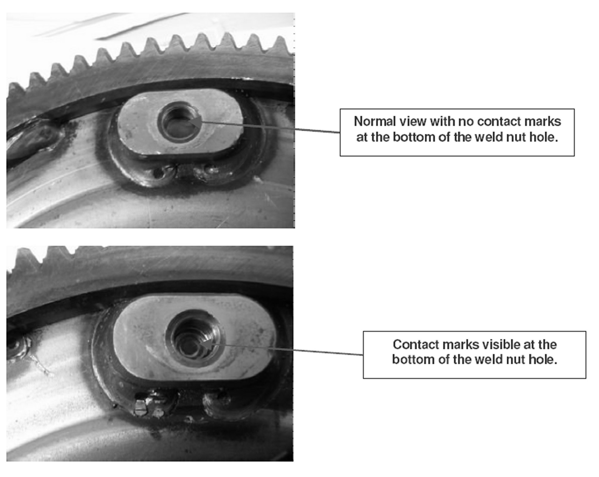 KMA's Product Quality recently discovered a problem with torque converters supplied with remanufactured automatic transaxles for Optima and Sedona. In some cases the bolt used to secure the torque converter for shipping is too long and can make contact with the torque converter housing if a spacing washer was not installed. When this bolt is tightened securely it makes contact with the torque converter housing and deforms the housing. This deformation can damage the clutch located inside the torque converter. All remanufactured Optima and Sedona automatic transaxles MUST be inspected to determine if there is any damage to the torque converter. To check for damage remove the bolt that secures the torque converter to the shipping bracket. Rotate the torque converter until you can view inside the weld nut hole from which the bolt was removed. If you can see any contact marks on the backside of the converter inside the weld nut hole do not install that unit in a vehicle. Reattach the torque converter to the shipping bracket and contact your dealer for instructions.