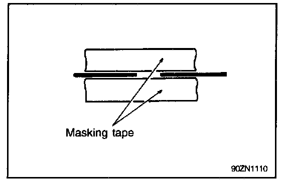 Wipe the glass adjacent to the broken heater line, clean with silicone remover and attach the masking tape as shown. Shake the conductive paint container well, and apply three coats with a brush at intervals of about 15 minutes apart. Remove the tape and allow sufficient time for drying before applying power.