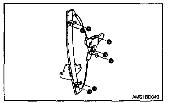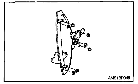 10. Tighten two glass mounting bolts on power window regulator assembly.