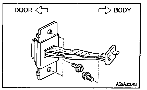 Tighten door hinge bolts to 10 - 19 lb-ft (13 - 26 N.m, 1.3 - 2.6 kg-m)