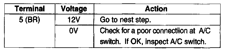 5. Check voltage at following terminal of A/C switch connector G-05.