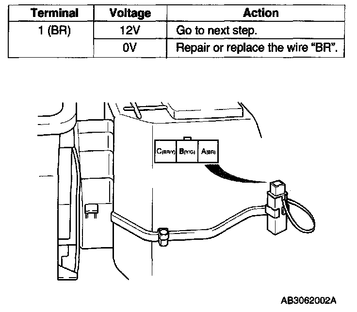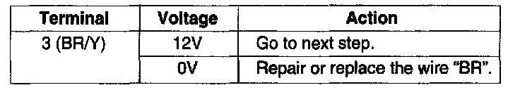 2. Apply 12 V to the terminal 1 (BR) and ground terminal 3 (BR/Y).