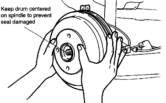 14. Keep the drum which is centered on the spindle to prevent a damage to the oil seal and spindle threads.